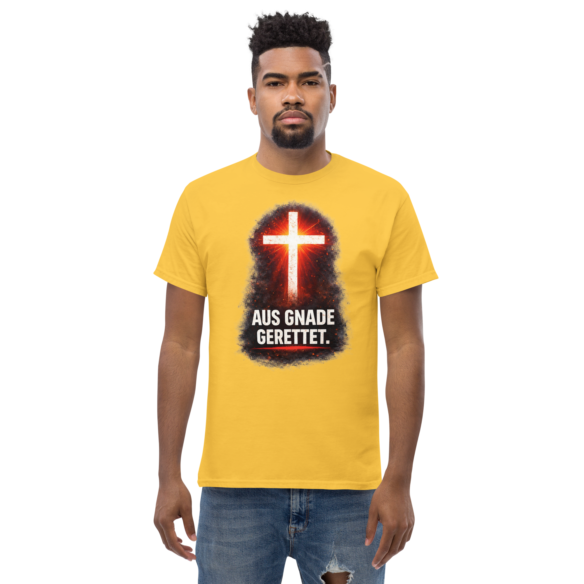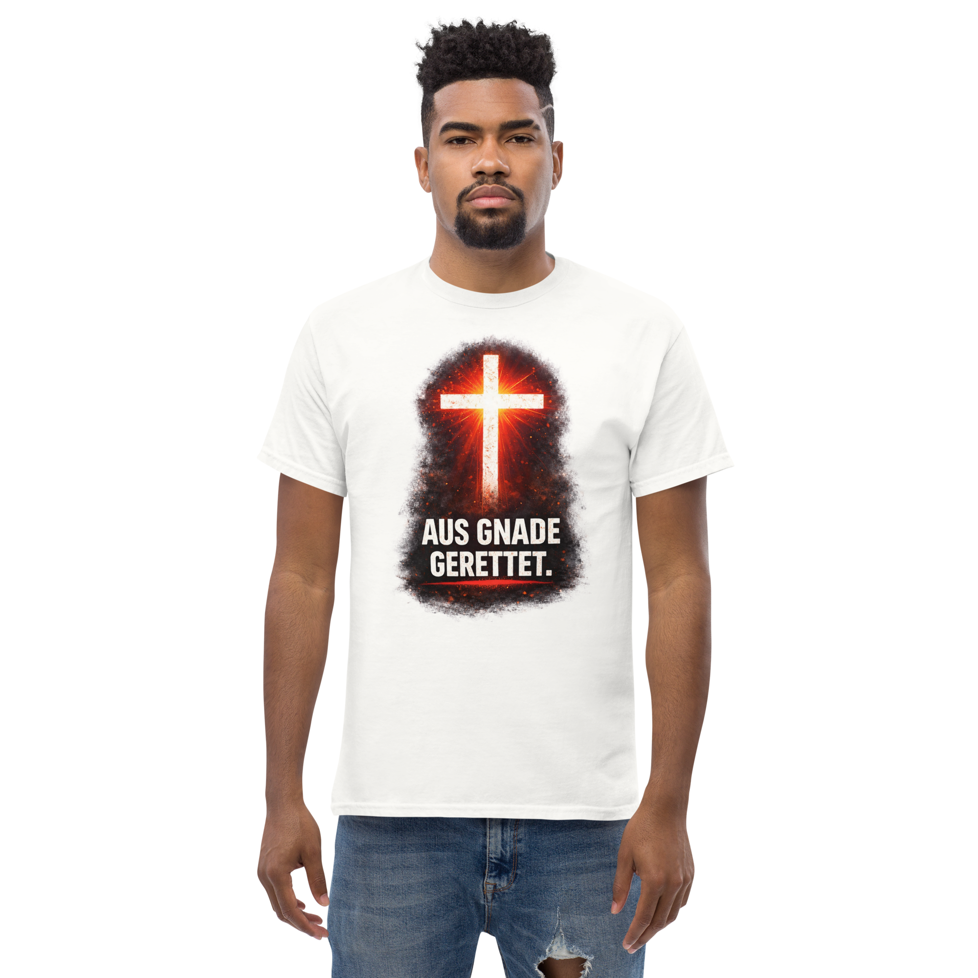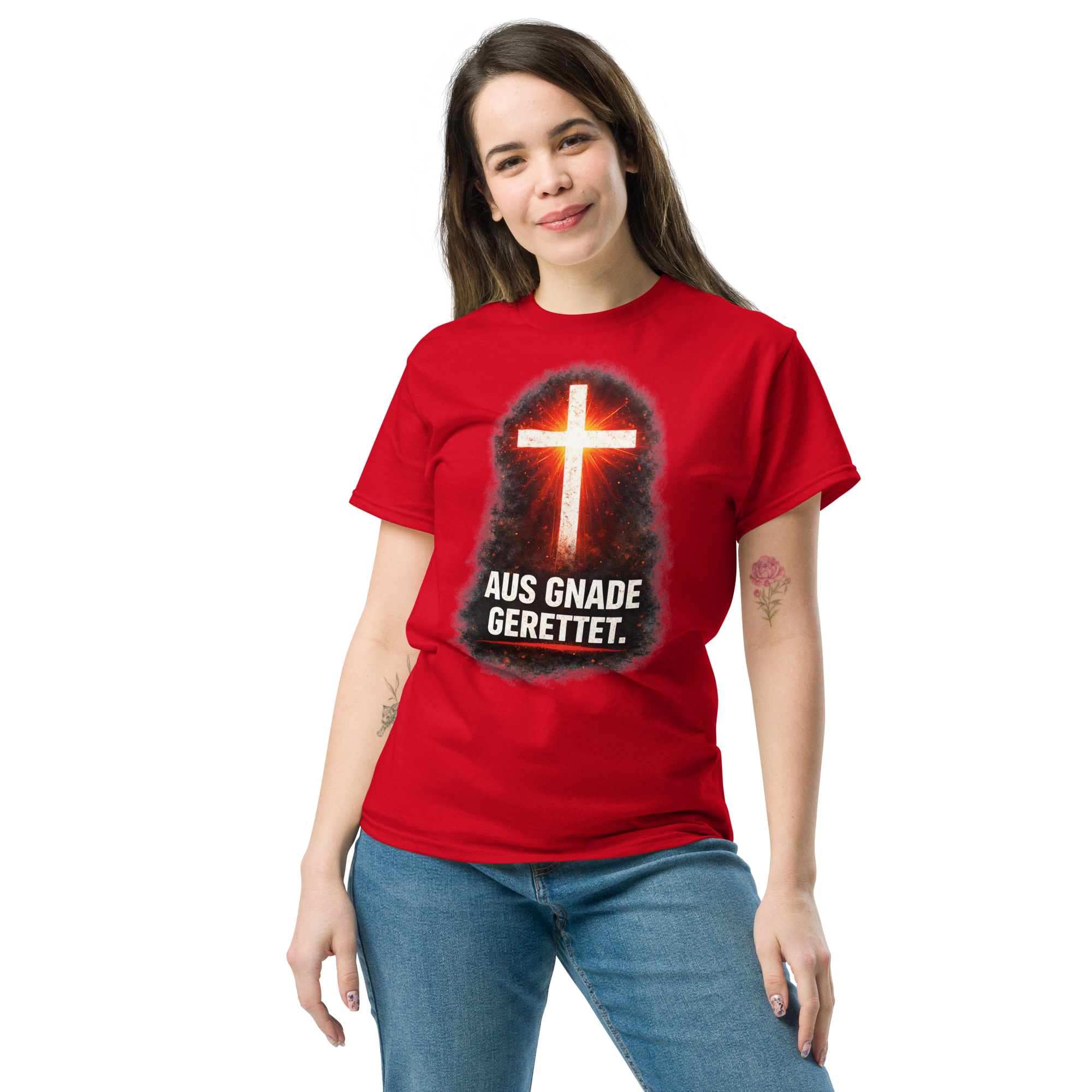 Das klassische Unisex-T-Shirt aus 100 % Baumwolle sorgt für eine gerade Linie. Es sitzt schön, behält klare Linien an den Kanten und passt perfekt zu mehrschichtigen Streetwear-Outfits. Außerdem ist es jetzt besonders im Trend!