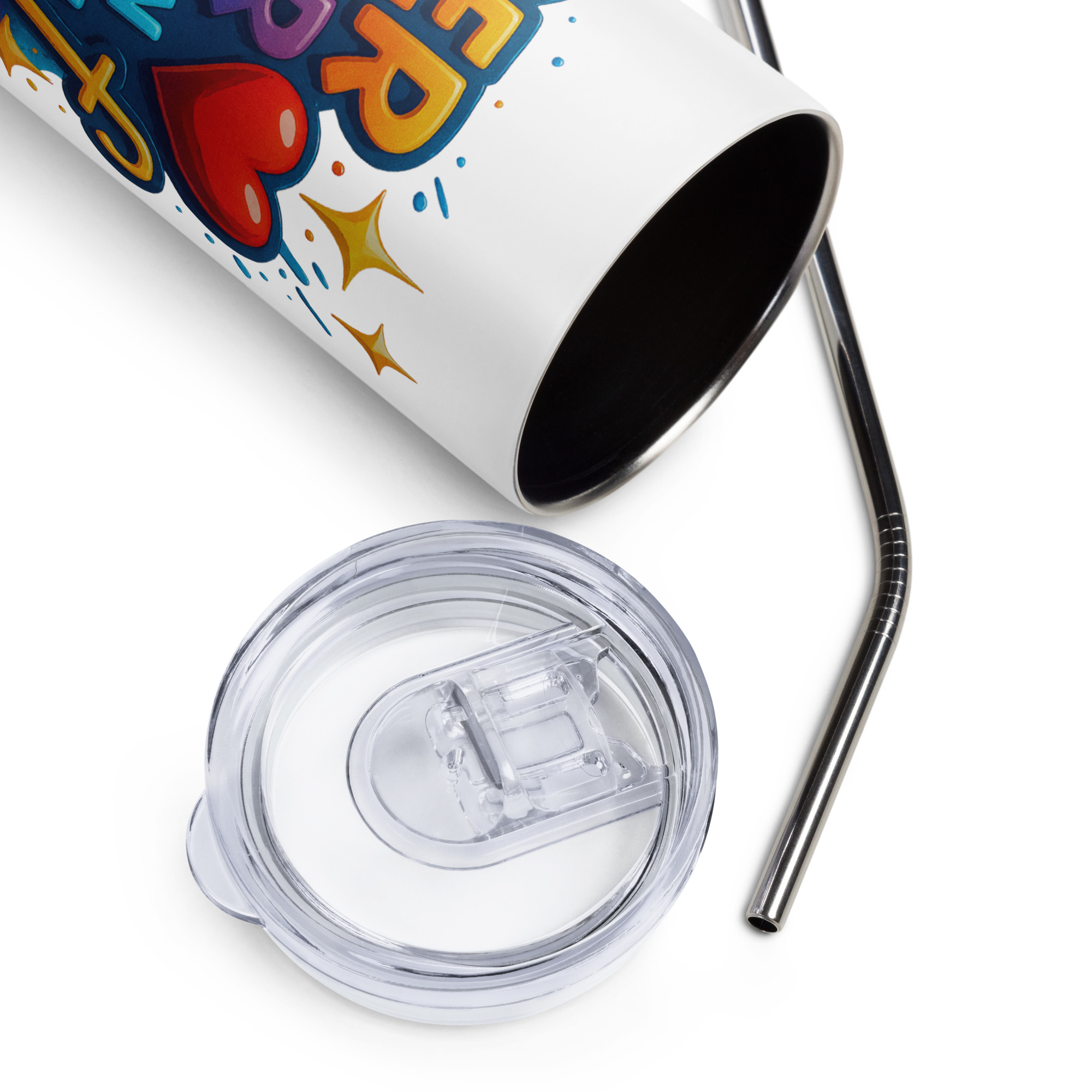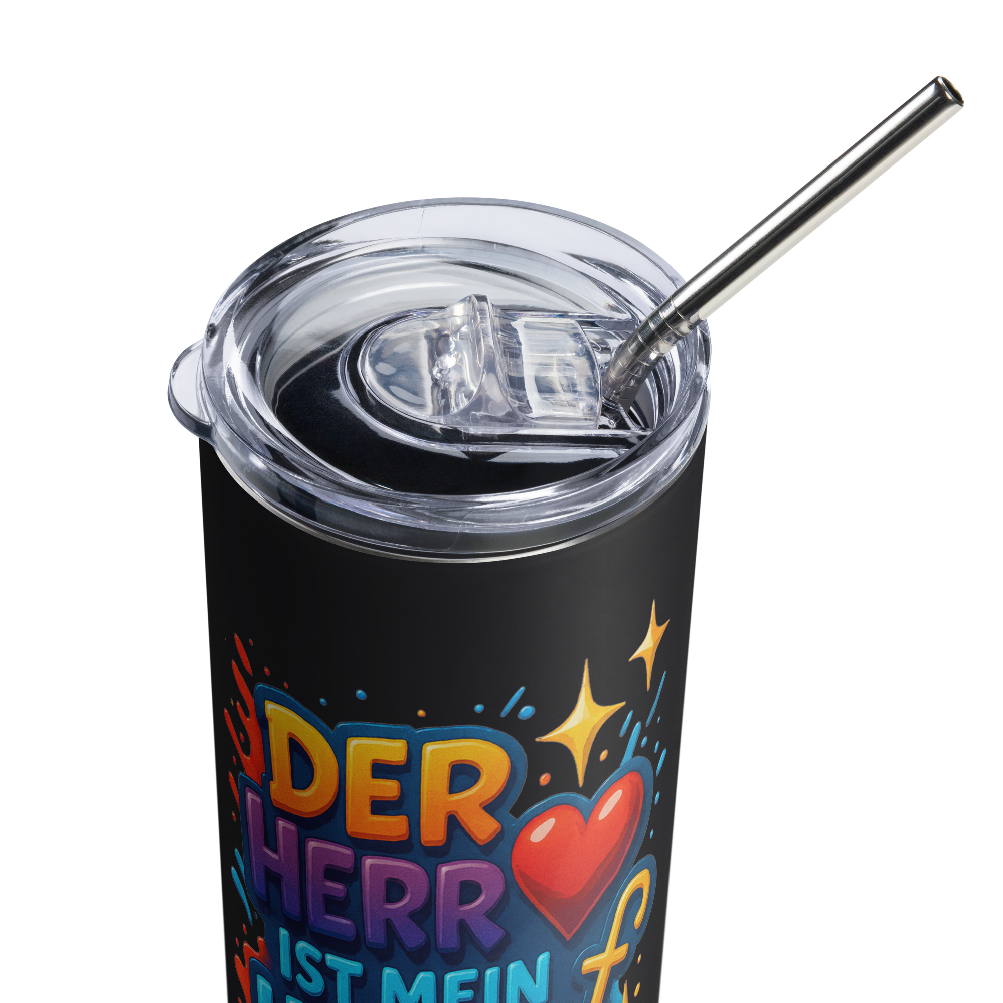 • Strohhalm und Deckel im Becher enthalten