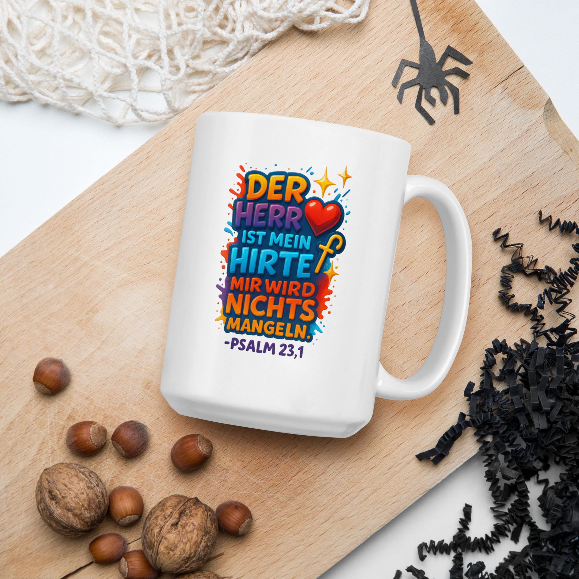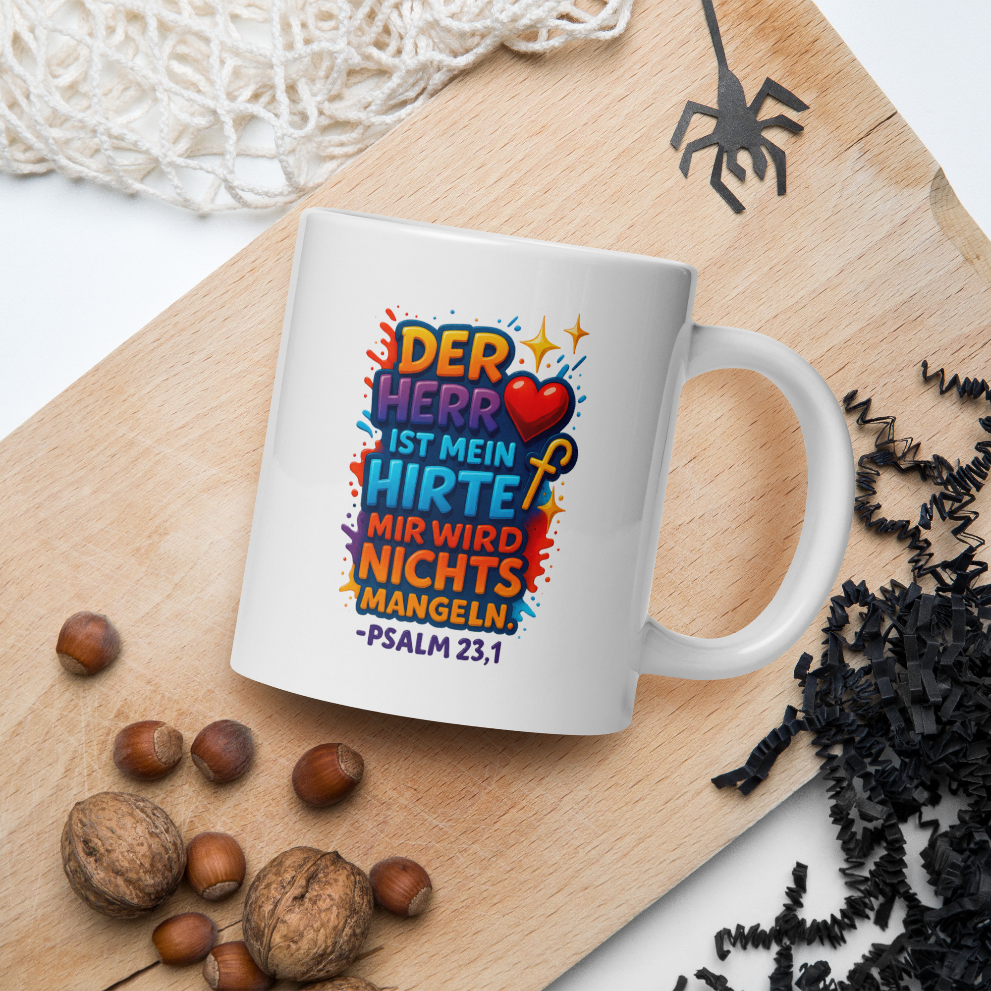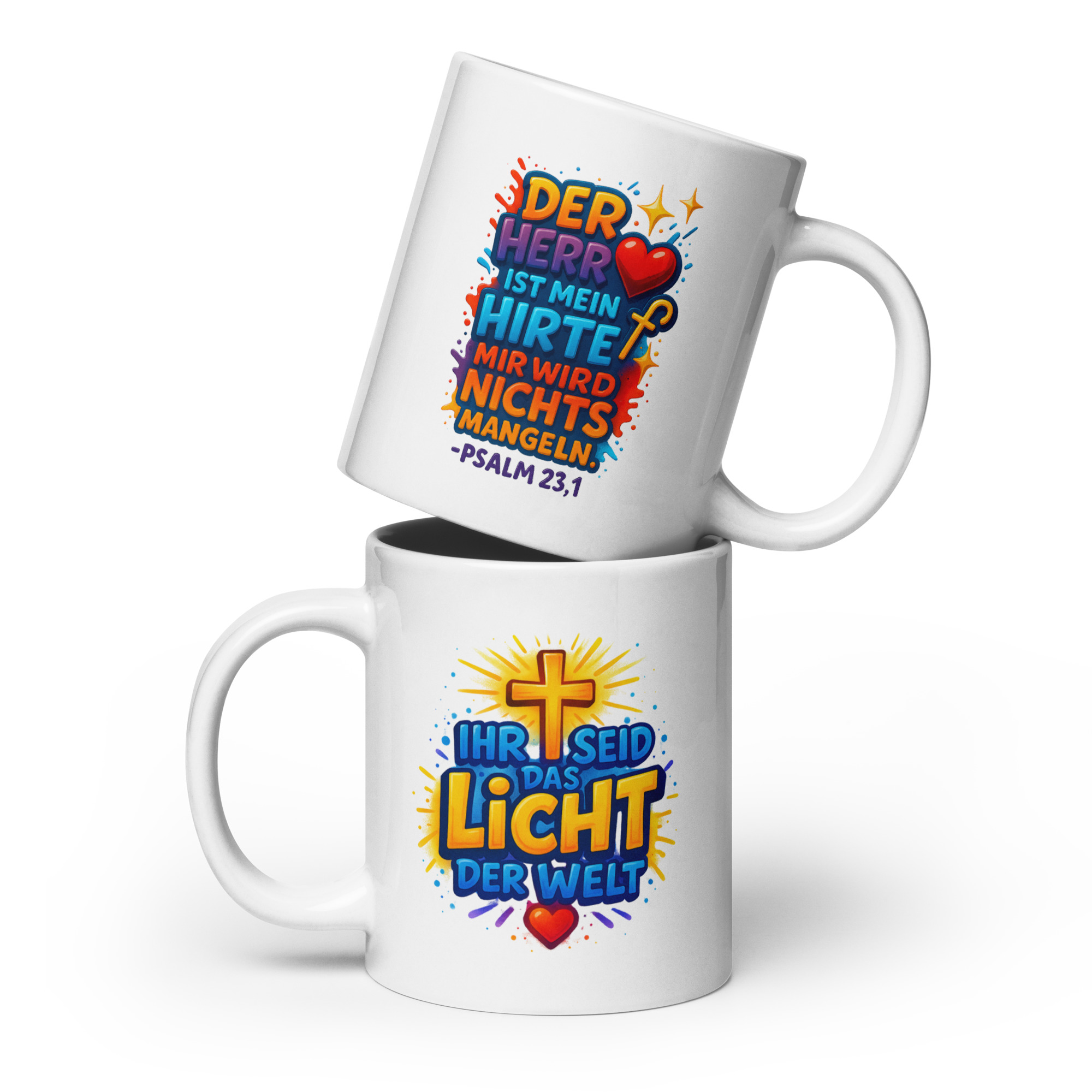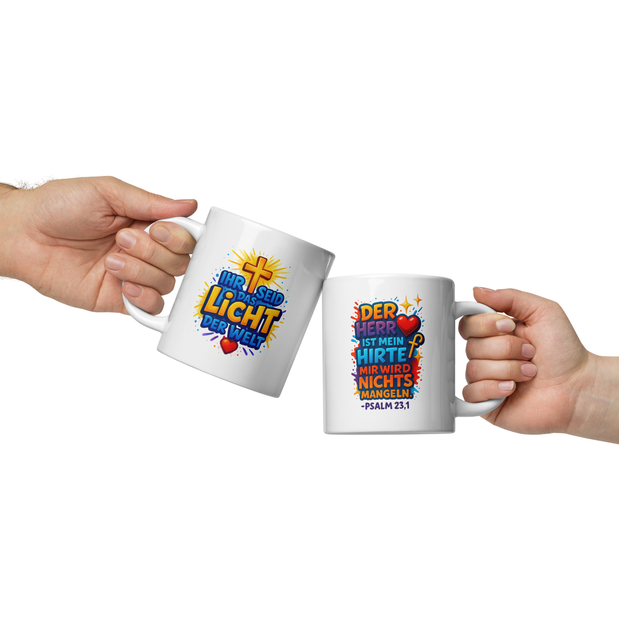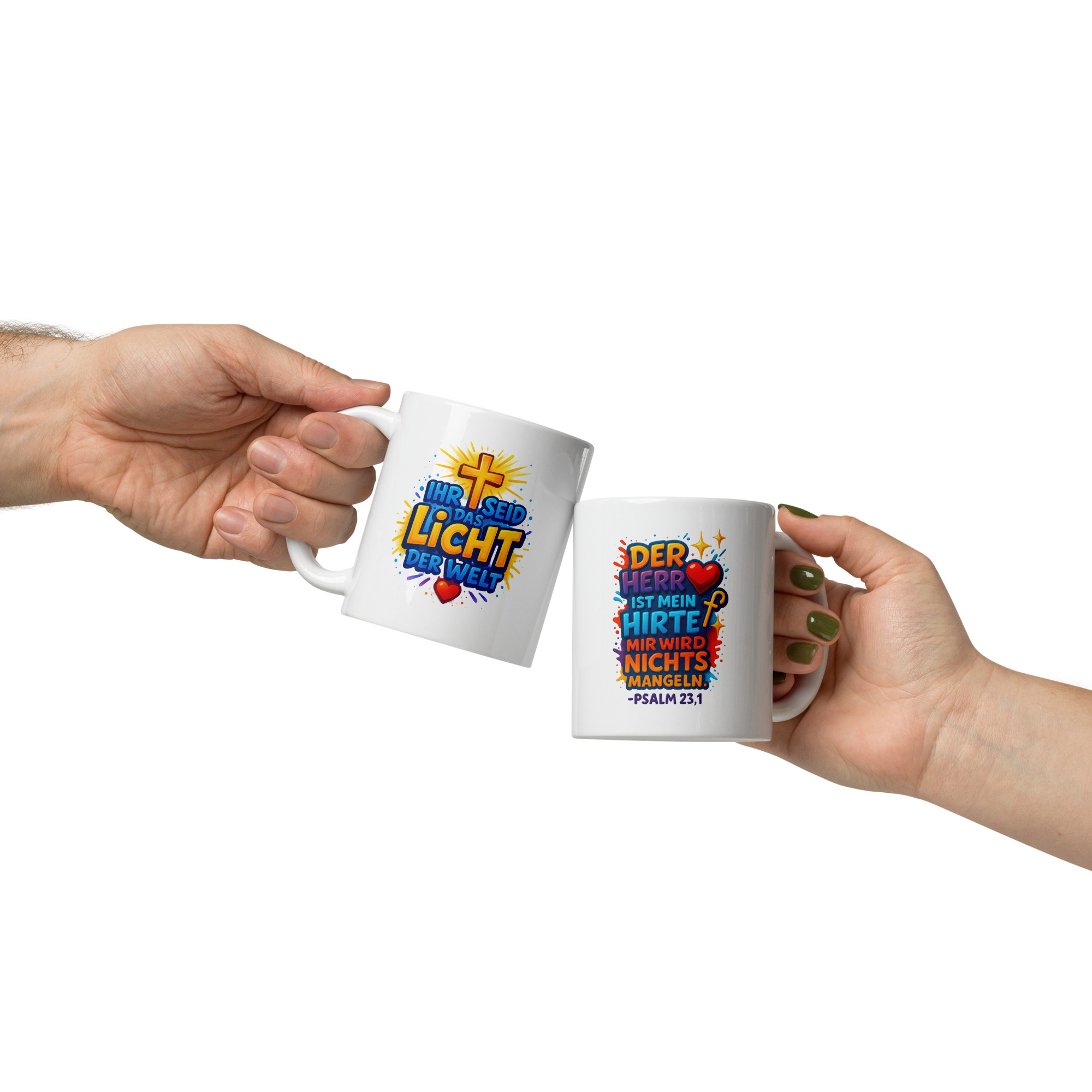Der HERR ist mein Hirte – Licht der Welt – Weiße, glänzende Tasse