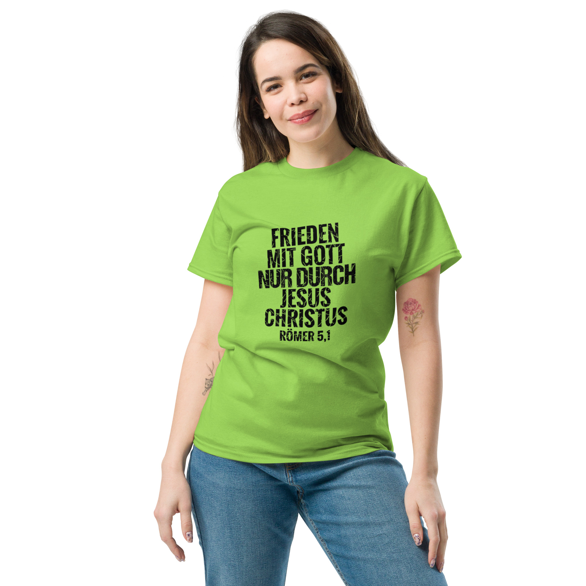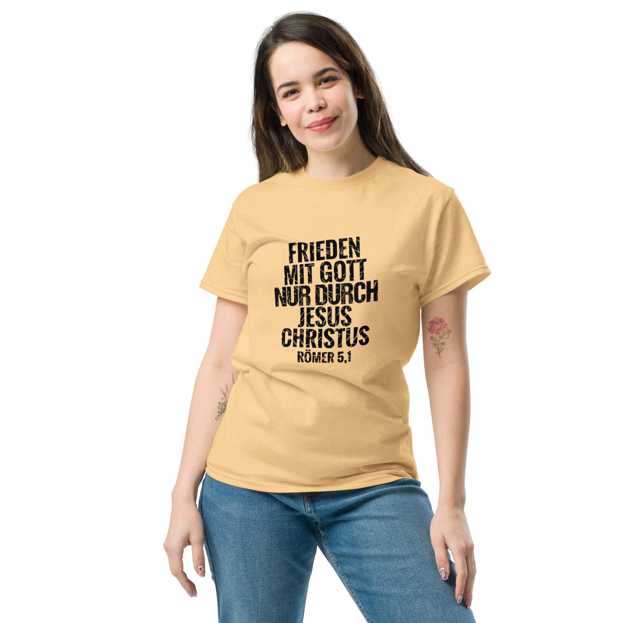 Das klassische Unisex-T-Shirt aus 100 % Baumwolle sorgt für eine gerade Linie. Es sitzt schön, behält klare Linien an den Kanten und passt perfekt zu mehrschichtigen Streetwear-Outfits. Außerdem ist es jetzt besonders im Trend!