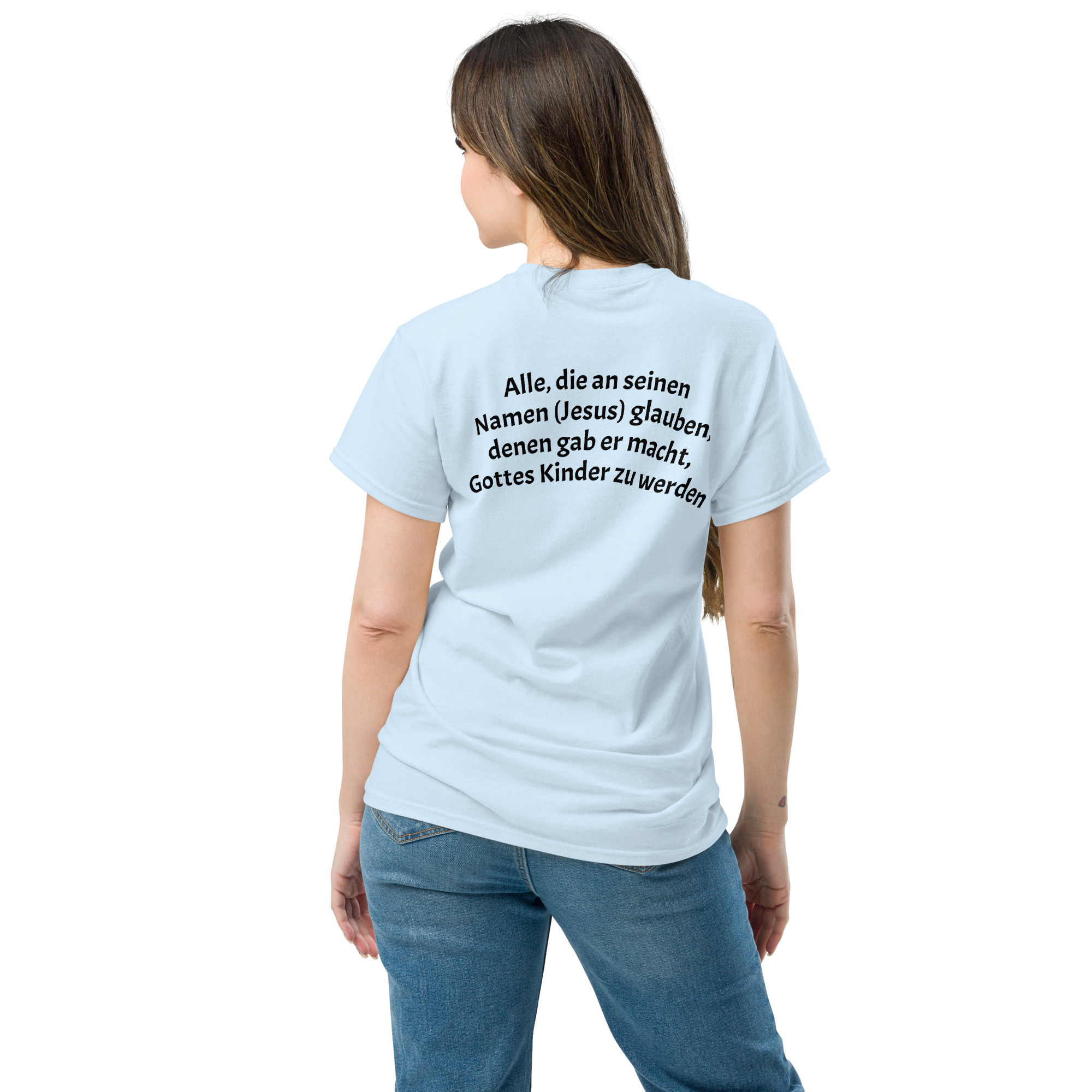 Das klassische Unisex-T-Shirt aus 100 % Baumwolle sorgt für eine gerade Linie. Es sitzt schön, behält klare Linien an den Kanten und passt perfekt zu mehrschichtigen Streetwear-Outfits. Außerdem ist es jetzt besonders im Trend!