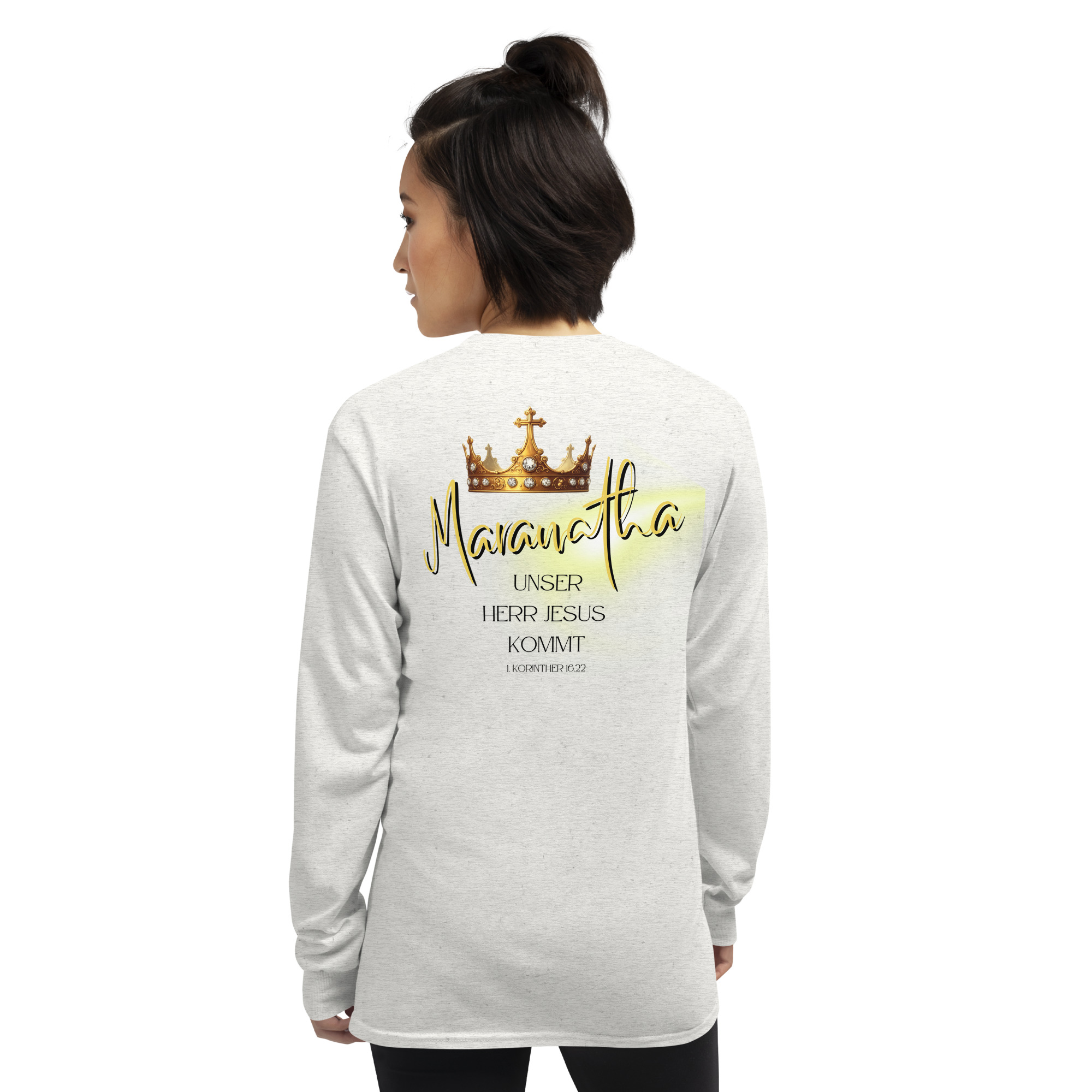 Dieses Langarmshirt hat gerippte Bündchen und eine klassische Passfrom. Es ist viertelgedreht, um eine Mittelfalte vorzubeugen, und perfekt für kühlere Tage.