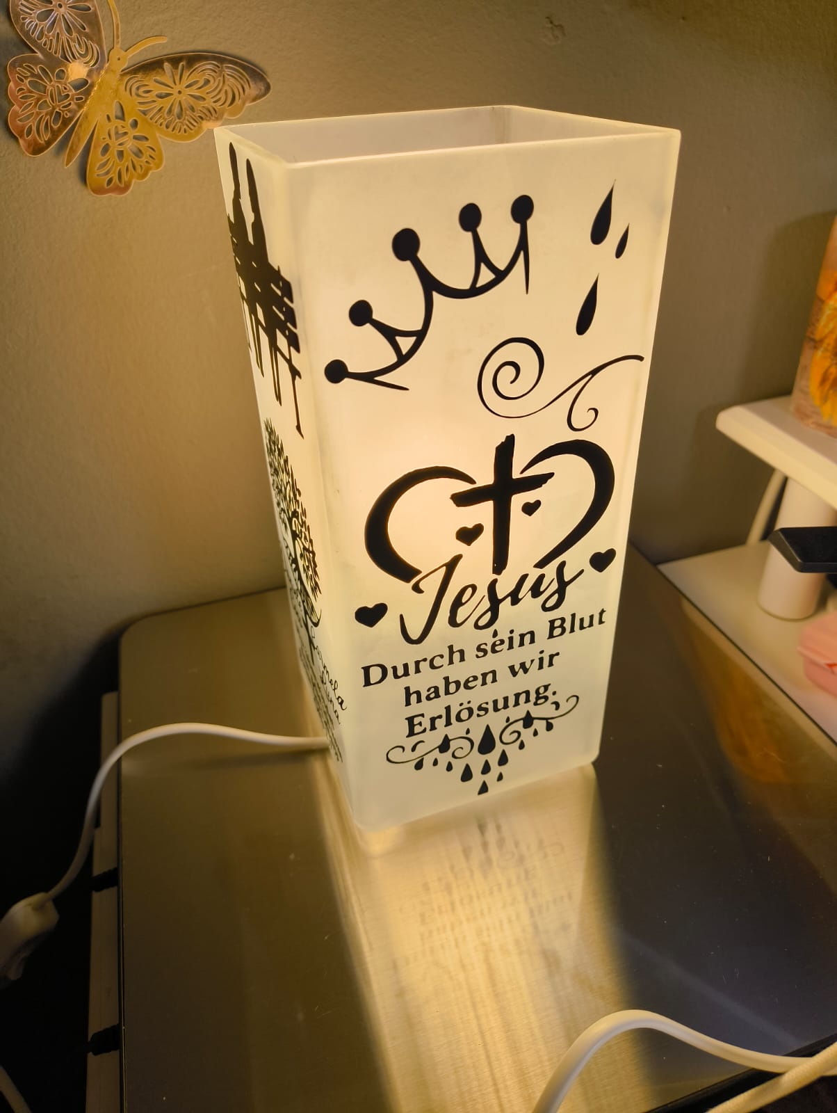 🤍 Handgefertigt mit Liebe – jedes Detail wird sorgfältig aufgebracht, sodass deine Lampe nicht nur dekorativ, sondern auch ein starkes Glaubenszeugnis ist.