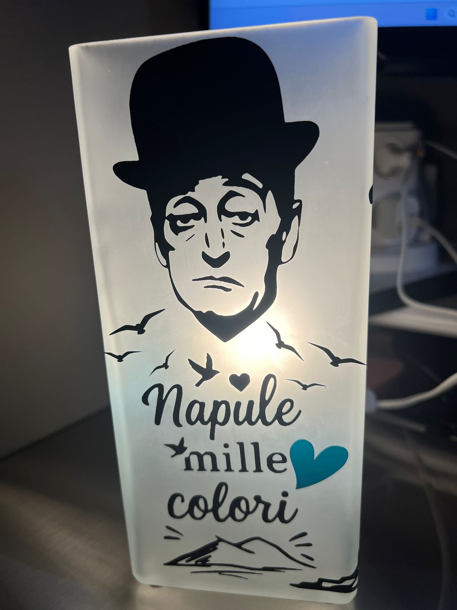 Alle vier Seiten der Lampe werden personalisiert.