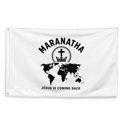 Maranatha – Jesus Is Coming Back – Fahne Weiß Wer möchte sein Haus nicht in ein wahres Zuhause verwandeln? Verschönere deine Räume mit dieser einzigartigen Flagge. Dank des Polyestermaterials knittert und schrumpft deine Fahne nicht und hält lange Zeit. • 100 % Polyester • Gestricktes Gewebe • Stoffgewicht: 150 g/m² • Auf einer Seite drucken…